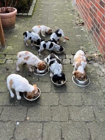 Die Welpen sind da! Unique hat am 22.10.2025 acht quirlige Welpen zur Welt gebracht, zwei Rüden und sechs Hündinnen, davon vier trikolor-farbene und vier rot-weiße Welpen. Alle Welpen sind bereits vergeben.