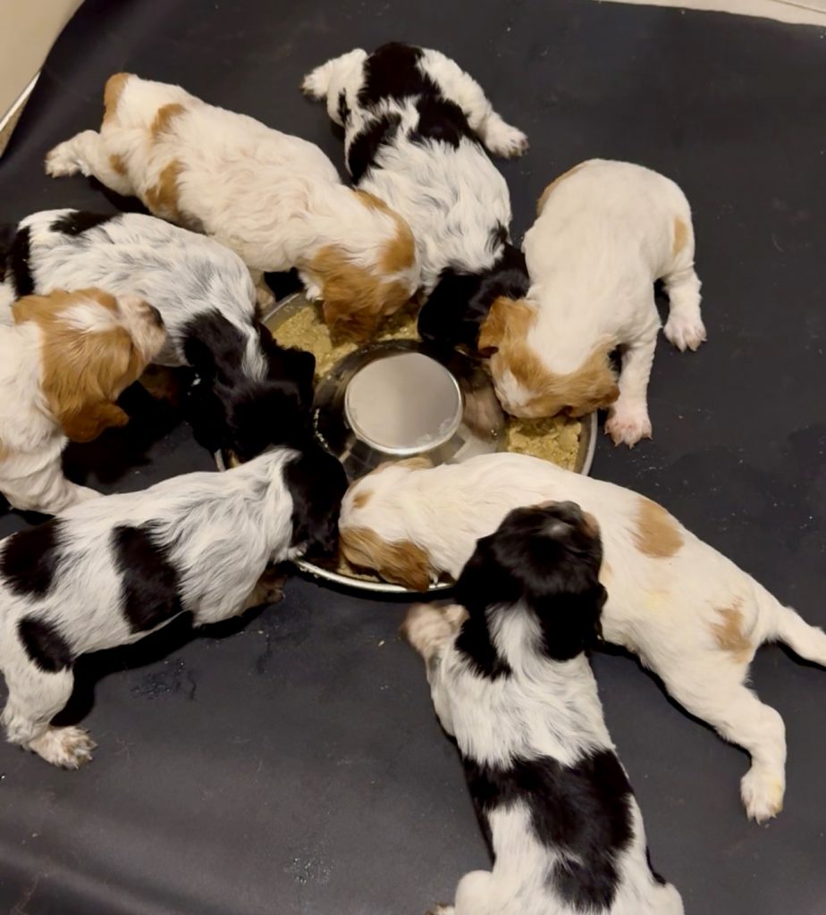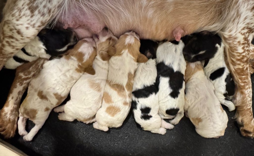 Heute ist der Wurf gefallen, Unique hat heute Nacht 8 Welpen gewölft, 2 Rüden und 6 Hündinnen, 4 trikolor-farbene und 4 rot-weiße. Alle sind wohlauf. Die Geburt war unkompliziert. Wir freuen uns sehr über diesen tollen Wurf!
